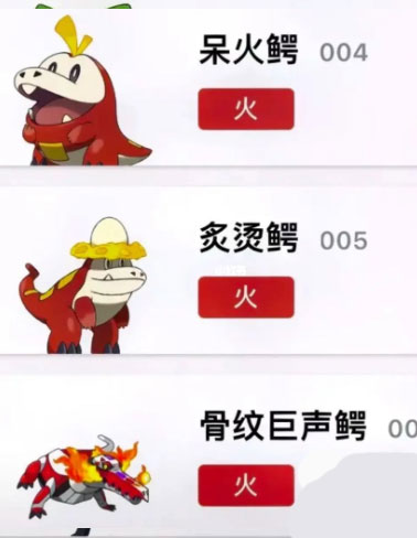 1、进化形态:呆火鳄--炙烫鳄--骨纹巨声鳄