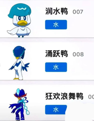 1、进化形态:润水鸭--踊跃鸭--狂欢浪舞鸭