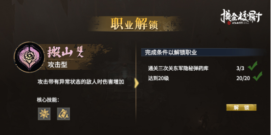 需要达到相应条件才可以解锁职业,以搬山道人为例,解锁职业需要角色等级达到20级,完成限定的剧情任务之后才能解锁【搬山道人】