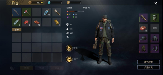 健康状态包括等级、生命值、饱食度、饥渴度、病态值、毒气值,其中饱食度和饥渴度过低、毒气值过高会降低玩家生命值,病态值增高会使得玩家移速和防御力降低。