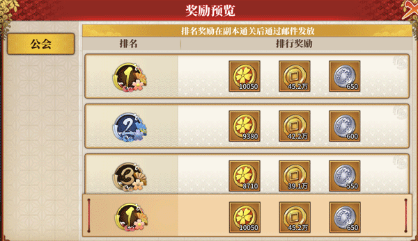 4.通关后所有攻打过boss的成员都可以领取通关奖励,奖励通过邮件发放