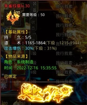 前面所说的是打击感和抗伤,那朱雀纹章就不一样了,可以说是必须要升级的一个纹章,因为它的属性是增加道术,和攻击增伤的百分比加成,基础攻击提的越高,百分比伤害也会同步增加,攻击越高,就能打更高级的BOSS!