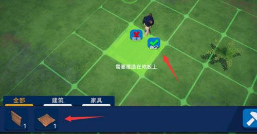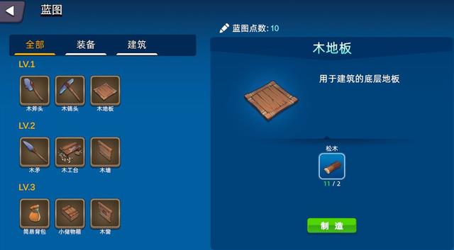 3.采集了资源之后,大家可以小锤子按钮,打开蓝图,先做一个木地板,因为工作台之类的建筑必须要放在木地板上面才能使用,所以一定要先在地面上铺上木地板