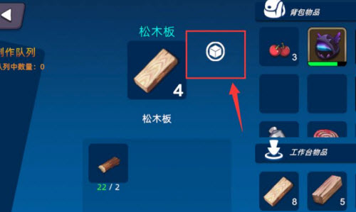 3、松木板制作好后,点击这个图标将加工好的松木板拿入背包。