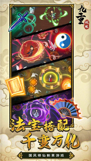 海量法宝选择,助你抵御怪潮;多样人物登场,各个身怀绝技;功法天赋加成,让你战力大增,感受割草般的快感。闯过九重试炼,练就仙人之躯!