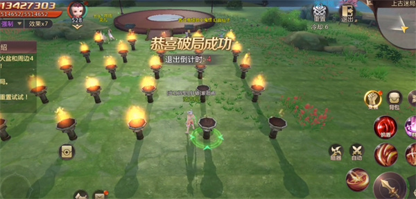 进入挑战界面后可以看到竖的有五排火盘,先点右手边的三排,成三角形是三个火盘的点亮方式,有的是四个可以一下子点亮的,右边三排点亮之后再点左边两排(记得剩一个火盘或者是两个火盘是一直没办法通关的,就需要重置或者退出重新进入点火盘界面),火盘全部点亮即可通关迷局。