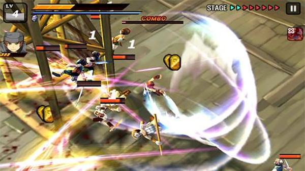 如果手指点在屏幕上向某一方向快速滑动,而且该方向有敌人(非BOSS),角色就会发动绝杀技,瞬间杀死该名敌人并回复一定的血量,会消耗大量耐力。