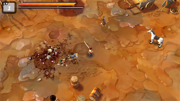 5、奖励关卡:骑马吃钱到终点,途中回避各种障碍和杀掉敌人,双击屏幕是跳。