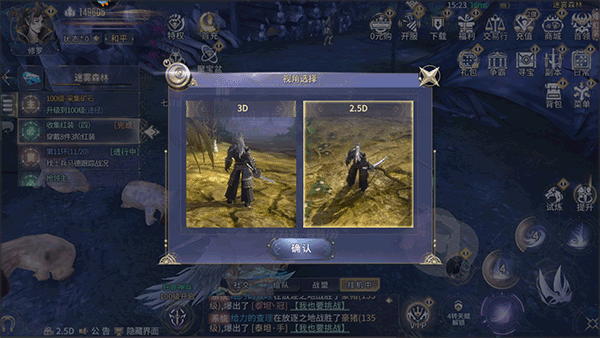 3、游戏界面显示控制,2.5D展示可以切换为3D,用户可以再次选择游戏模式。