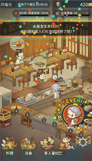 游戏主线:通过制作料理卖给客人赚钱,不断的研发新料理,购买新设备,以及触发老奶奶与客人、老爷爷之间的故事。