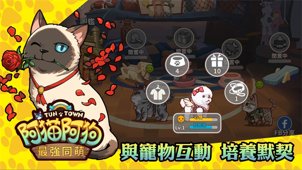 《 阿猫阿狗 最强同萌》为一款结合了「道具」、「动作」、「宠物养成」、「RPG」等众多元素的手机游戏。