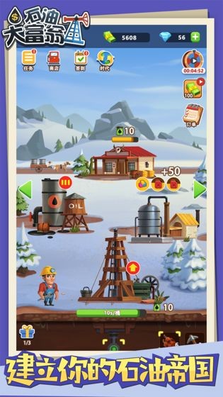 《石油大富豪》是一款充满趣味的休闲模拟类游戏。玩家在游戏中,可以招募挖掘工人,深入地底开采石油,还能搭建石油加工厂,依靠售卖石油获取巨额利润,从而扩大自己的商业版图。这款游戏乐趣无穷,玩家能在游玩过程中逐渐成长为富甲一方的人物。