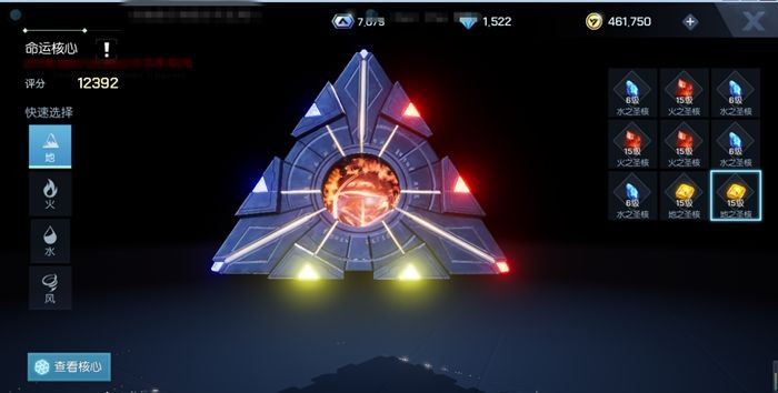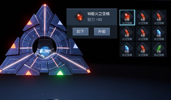 命运核心有四个面,分别对应地·火·水·风四大元素,圣核只能嵌入在相同属性的面的插槽上。四大元素对应的是:地之圣核(黄色)提升角色体质属性、火之圣核(红色)根据职业不同提升角色力量或智力属性、水之圣核(蓝色)提升角色洞察属性和风之圣核(绿色)提升角色灵巧属性。这里注意同一种属性最多只能镶嵌9个。