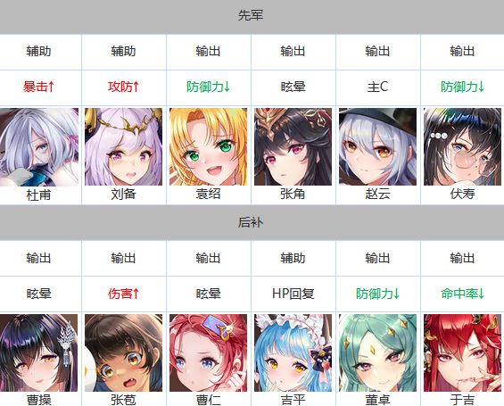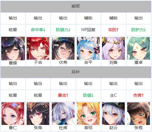 由于进攻方先手,防守一方的先军及容易造成减员。所以前排宜编排一些练度较高(命轮+5)的武将来抗压,在利用DB打反手。