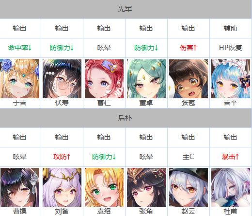 进攻方拥有先手优势。因此,1技能可以攻击4-6个目标的武将是前军的核心,尽量编在1号位,快速清理对方的前军。