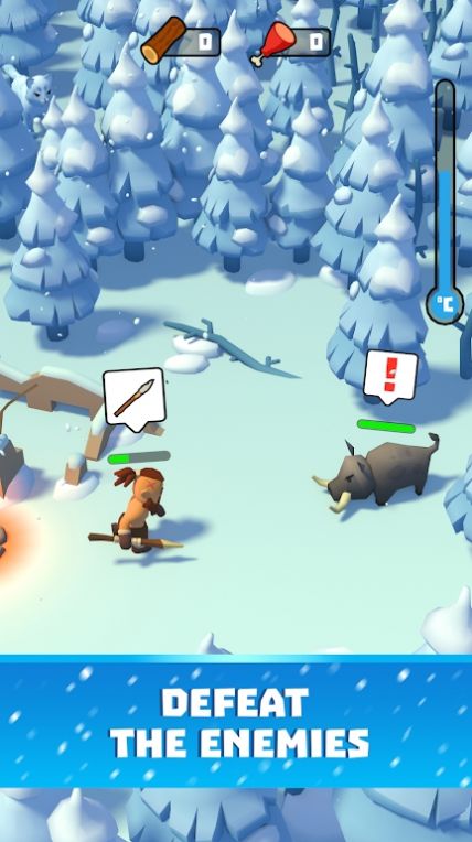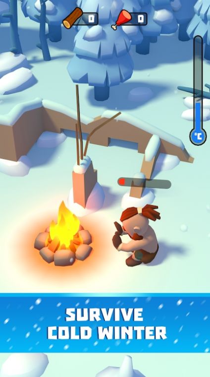《冰上生存放置大亨》是一款充满卡通风格的模拟生存游戏。在游戏里,玩家将化身一名因意外被困于山谷的原始人。在这冰天雪地的寒冷冬季,你得想尽办法活下去。首要任务便是收集充足的木材生火取暖,不然在这冰天雪地的环境中,你很快就会被冻僵。除此之外,你还得前往周边采集各类野果,设法狩猎野兽以获取食物。赶紧下载游戏,凭借你的聪明才智,在这恶劣的环境中生存下来吧!