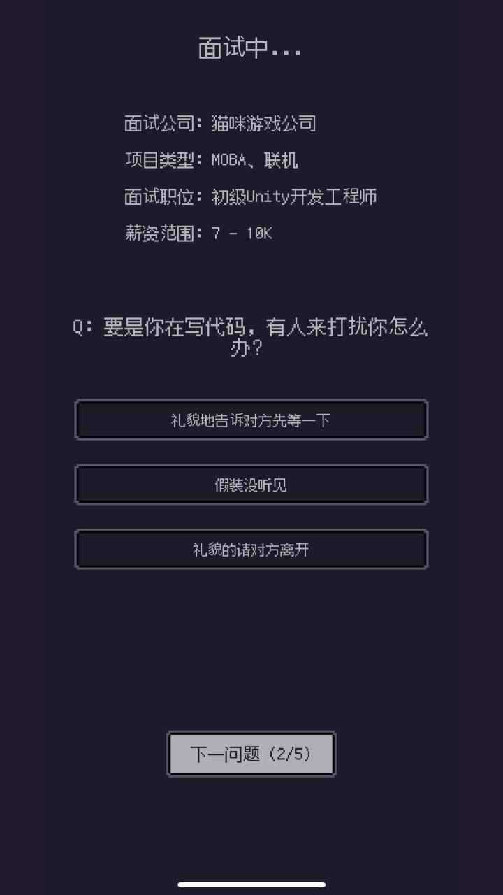 2、游戏的主角是一个普普通通的小码农,刚刚来到一线城市,开始自己的职业打工生涯;