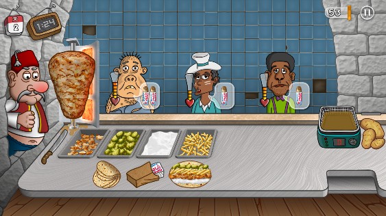 花一些时间熟悉操作和各项功能。了解如何制作沙威玛、接待顾客、管理库存等基本操作。