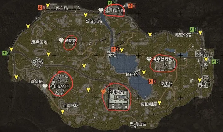 1. 首先进行伪装玩法,地图选北山,距离五个画圈区域,哪个离得近就前往哪个,原因是这些区域里的人机一般配备三套装备,还会有像维克托9、维克托45、MP5、AK等价值1万的枪械。