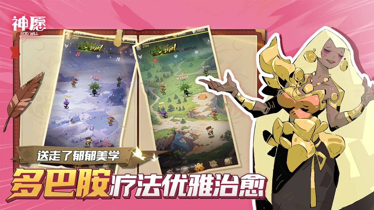 《神愿》是一款融合了放置、计策以及资源采集等多种元素的奇幻探险手游。在游戏里,你可以培养人才,组建团队,还能巧妙布局阵容,以此应对各类关卡的挑战。而且,该游戏支持离线挂机,让你无论何时何地,都能畅享轻松愉悦的冒险之旅。