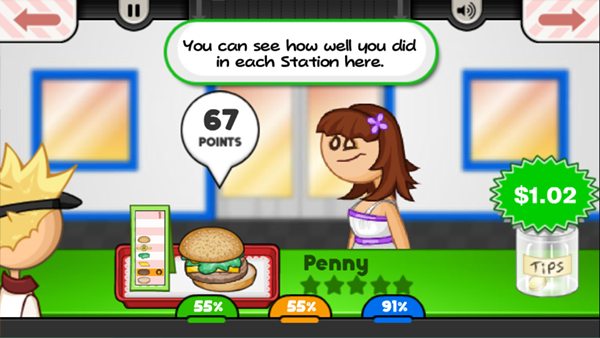 6、以上就是汉堡点单制作并售出的全过程了,老爹汉堡店的培训到此结束,回到点单台准备做下一单生意吧!