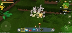 5、找到材料之后,将游戏视角移动到石头上,然后长按石头,就可以自动获取材料了;