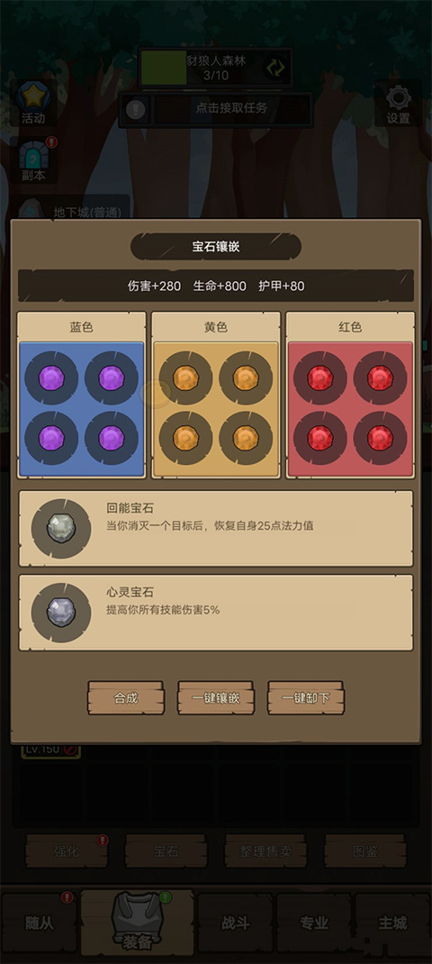 宝石选择:红橙紫,合错了也没关系,反正红宝石也就那么多,黄蓝宝石严重溢出。