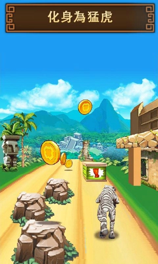 1. 游戏以逃亡为主题,玩家需不断奔跑、跳跃,躲避恶老虎与狮子的追捕,从而获得刺激又紧张的游戏体验。