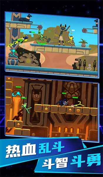 火柴人无限决斗是一款极其精彩的动作冒险游戏。玩家在挑战过程中,能够挑选自己心仪的角色,接着再选取合适的武器,助力快速完成挑战任务。武器可有效增强你的攻击能力,诸如手枪、匕首、炸弹等,玩家能够自由选择。游戏画面高清精美,色彩极为丰富,能为大家带来高品质的视觉体验。