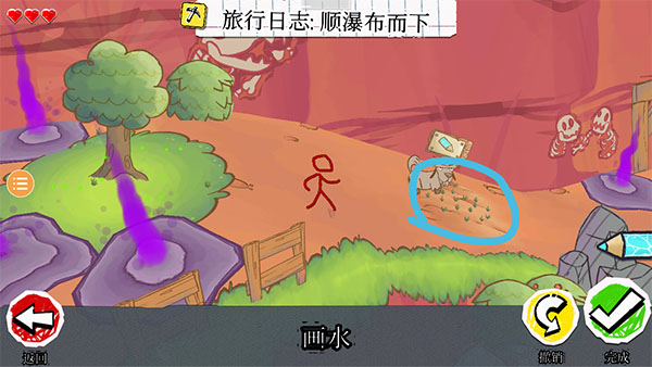 3、用画笔在前方随意画几笔,制造出水后便可通过