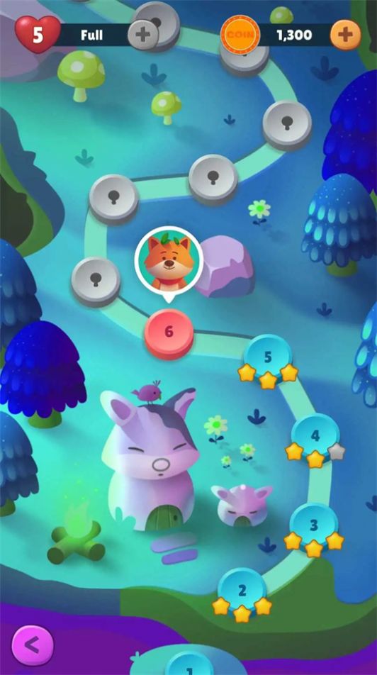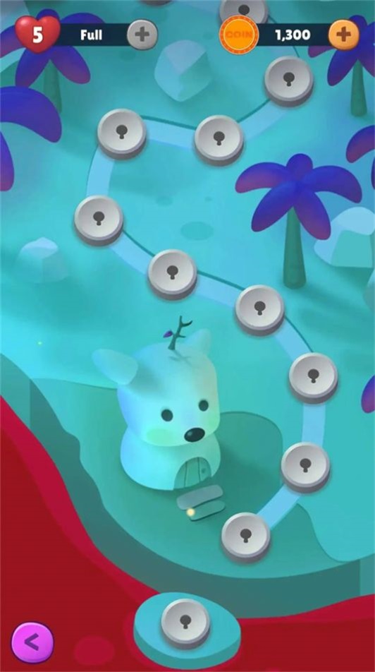 2.不断发射泡泡,将所有围在小动物外的泡泡消除才能够通过。