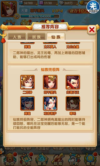 点评:仙族终极阵容,二郎神拥有高输出的同时能够持续回怒,哪吒在法宝觉醒之后能够无敌,是一个能打能抗的全能阵容