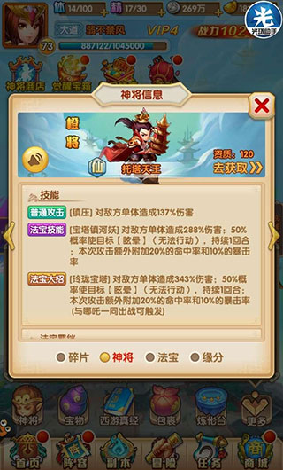 点评:最肉的一堆武将堆在一起会发生什么呢?搭配托塔天王的单秒,红孩儿的燃烧补刀,无论是叛军还是副本都是很给力的!高投入,氪金