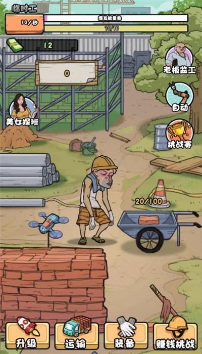 2.玩家带领角色搬砖,在丰富的场景完成各种游戏任务,整个场景的刻画可能会让玩家觉得非常的心酸,觉得角色非常的辛苦,所以要帮他逆袭。