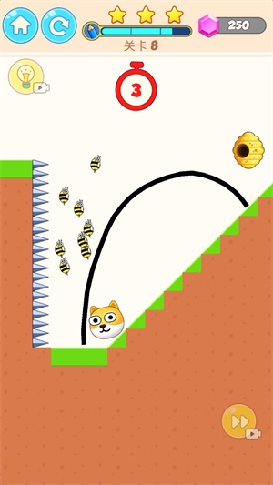 所有任务皆经过精心设计,精彩非凡。瞧,狗头正遭受蜜蜂的攻击,玩家需迅速寻觅解决办法,助狗头脱离险境。这里还有功能多样的挑战道具,玩家可不断收集,借此轻松完成更多任务,解救狗头。