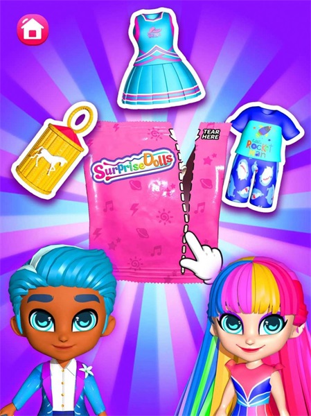 惊喜娃娃盲盒游戏里,画面色彩极为鲜艳活泼。在这里,你能以多样方式装扮各类娃娃。其中的服装与饰品丰富又齐全,任你自由挑选用于装扮,随时依据自己的想法打造出独一无二的造型。