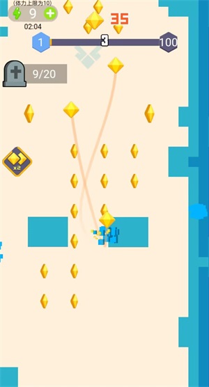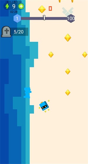 方块功夫游侠是一款极为休闲的闯关类游戏。在游戏的每一个关卡中,都分布着众多宝石,它们的位置较为分散。玩家需竭尽全力将所有宝石收集起来。而且每个关卡都设有复活机会,玩家仅需观看一个视频,就能迅速复活。