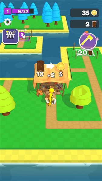 2:多元化的游戏场景里拥有的树林非常的多,玩家要把这些树林砍成平地,用收集来的树木制作成各种各样的木料。