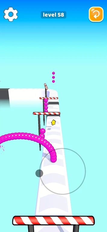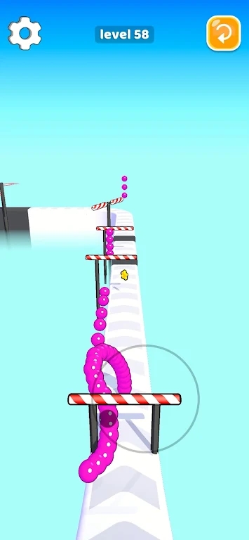 1、整个的游戏界面设置的更加的卡通,各种色彩搭配的非常的鲜明,可以不断的去收集更多的小球,让自己的身体变得更加长。