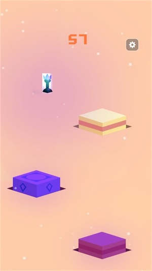 1. 在未知的前行道路上,会陆续出现一个个处于不同角度的方块,玩家只有操控棋子精准跳跃,才能获取最高分数。