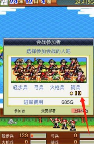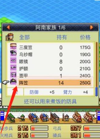 3、玩家需要给他们戴上南蛮具足、阵笠、超级忍者刀、马匹,这样就变成骑兵了。