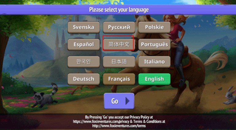 1. 启动骑马故事汉化版游戏,耐心等待其加载。 2. 挑选简体中文选项。