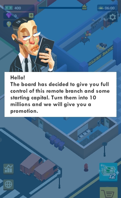 《空闲银行大亨》是一款趣味性满满的模拟经营类游戏。在游戏里,玩家会化身为银行经理,通过持续操作来管理好自己的银行,妥善处理不同客户间的关系及其业务。在这里,你每日的工作便是站在柜台前,竭尽全力满足用户的各类需求,从而让自己的银行能够更良好地运转。