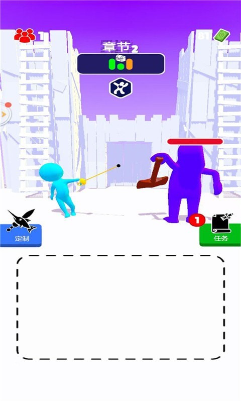 勇往直击是一款休闲闯关游戏,操作十分简单流畅。玩家能够操控橡皮人,借助丰富多样的武器与敌人展开战斗,并轻松将其解决。而且,所有武器都能由你自由绘制,充分发挥想象力,绘制出各式各样的道具和武器,展现卓越实力。同时,玩家还可参与不同战役,玩法轻松解压。此外,还能用金币购买所需的所有皮肤。