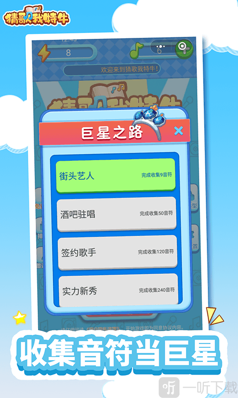 2.听到各种不同的歌曲,释放内心的压力,并迅速选择正确的答案。