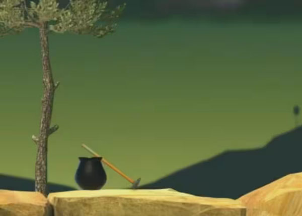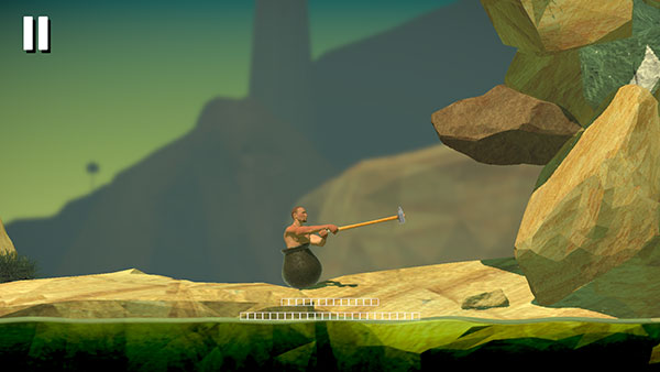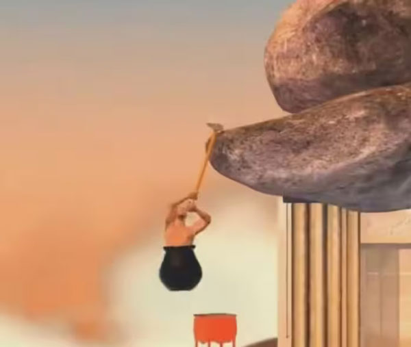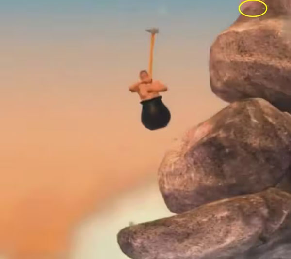 在游戏当中你将只能使用一把锤子和一个锅攀越高山,在我们常人眼中看起来根本是不可能完成的,这也就是游戏想传达一下不抛弃不放弃的精神,即使在游戏当中一次次的坠落、退后,从山上掉到山底也要爬起来继续攀岩。