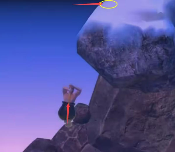 上来以后就是高塔,这个位置你已经要结束了,所以慢慢的往上勾,到达图片的这个位置,可以直接往上撑,这个时候人物的重力会反向,你会慢慢向上漂浮,最后……