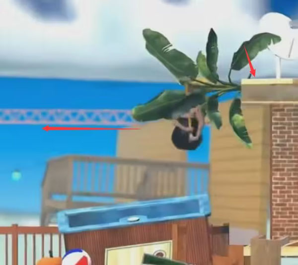 6、这个点稍微麻烦一点,头上的两个灯具需要很好的勾住,所以起点位置要选好,角度也要选好,之后按照红色箭头让锤子通过这个轨迹勾住就OK啦。(难度系数:2.5星)