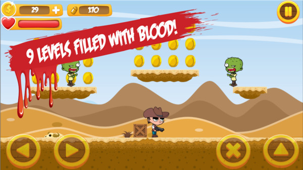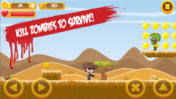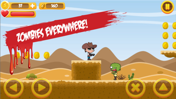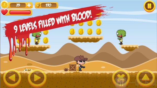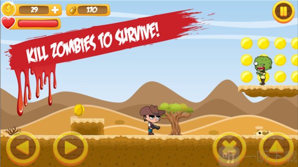 牛仔吊打僵尸 这款游戏以卡通风格打造,游戏里出现的僵尸并不会让玩家感到恐怖,反而显得十分可爱。玩家要灵活操控牛仔移动,在场景中展开冒险挑战,在收集金币的同时消灭僵尸。游戏的关卡模式相当丰富多样。