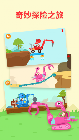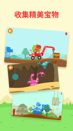 1. 有众多恐龙车辆等待着您,比如寻找宝石、完成神秘的恐龙拼图以及营救海洋动物等活动。